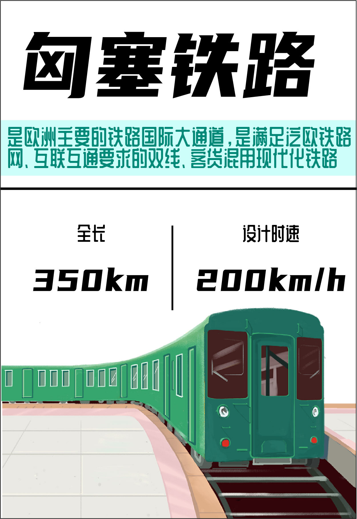 作为中国一带一路倡议的重点项目,匈塞铁路是中国高铁走出去在欧洲的第一个项目,也是中国高铁技术和装备走出去的重要组成部分,匈塞铁路全长350公里,是欧洲主要的铁路国际大通道,是满足泛欧铁路网、互联互通要求的双线、客货混用现代化铁路,设计时速200公里每小时。