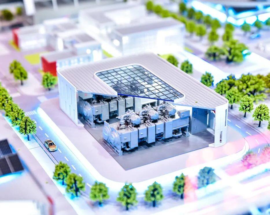 来到丹佛斯展台,一块大沙盘映入眼帘,仿佛来到一座微缩版的“绿色城市”。各实际应用场景中的“碳中和性能”被融入到该“绿色低碳概念园区”中。