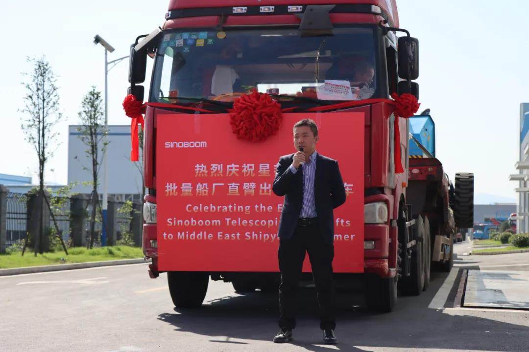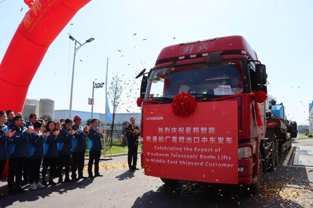 11月10日上午11时,星邦智能批量船厂专用型臂车出口中东发车仪式隆重举行,公司中高层领导和员工代表共同见证了这一高光时刻,该批设备即将出发服役于中东某大型船厂。