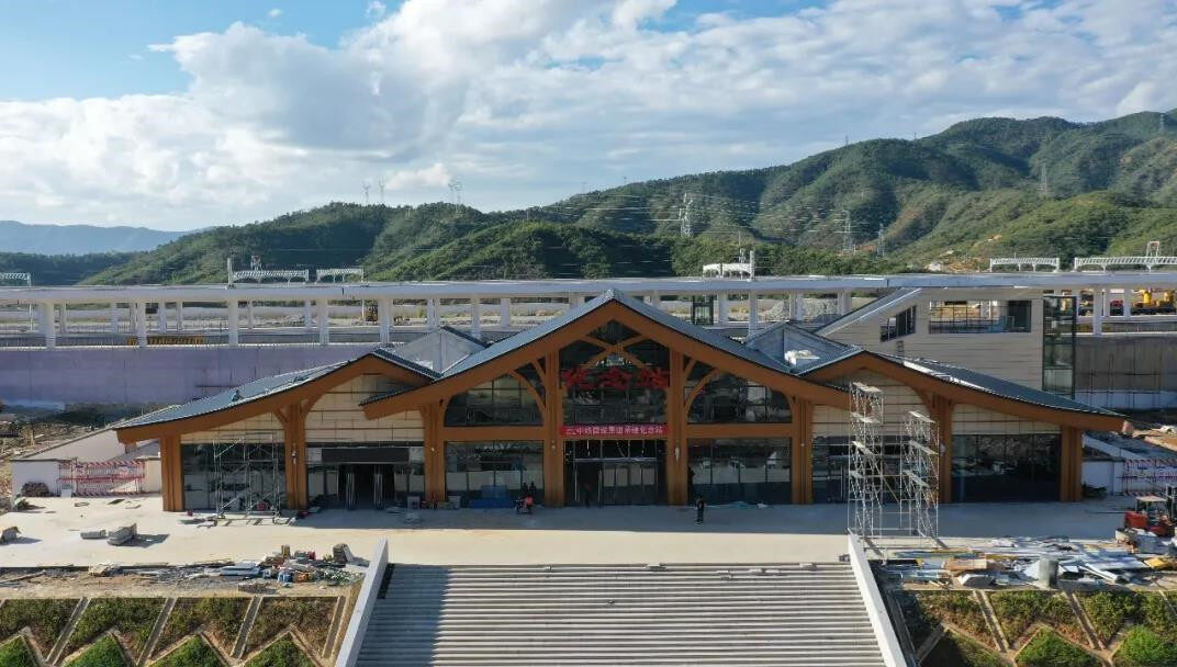 建设过程中,项目团队克服雨季施工、“战线”长、物料运输不便等困难,采用“一总多分”的创新管理模式,以墨江站为总部,各站“就地取材”,就近采购当地机械、物料;各站管理人员深入少数民族聚居地,以走访形式探寻各民族核心文化,充分利用BIM信息化技术,对站房整体建模,预置多版方案反馈至总部确定后执行,进行专业化、立体化交底,全方位保障站房形象效果。