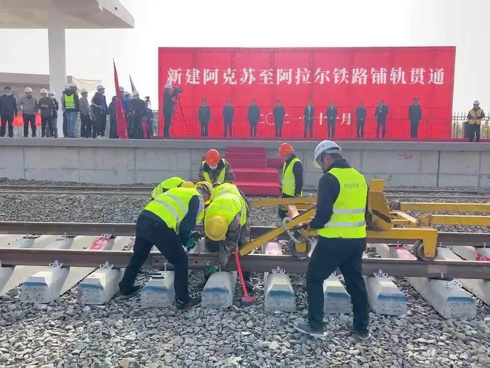 On November 11, 2021, at the construction site of the Aksu-Alar railway project in Xinjiang, with the last set of rails falling steadily, the entire line of the A-A railway line was laid through smoothly.