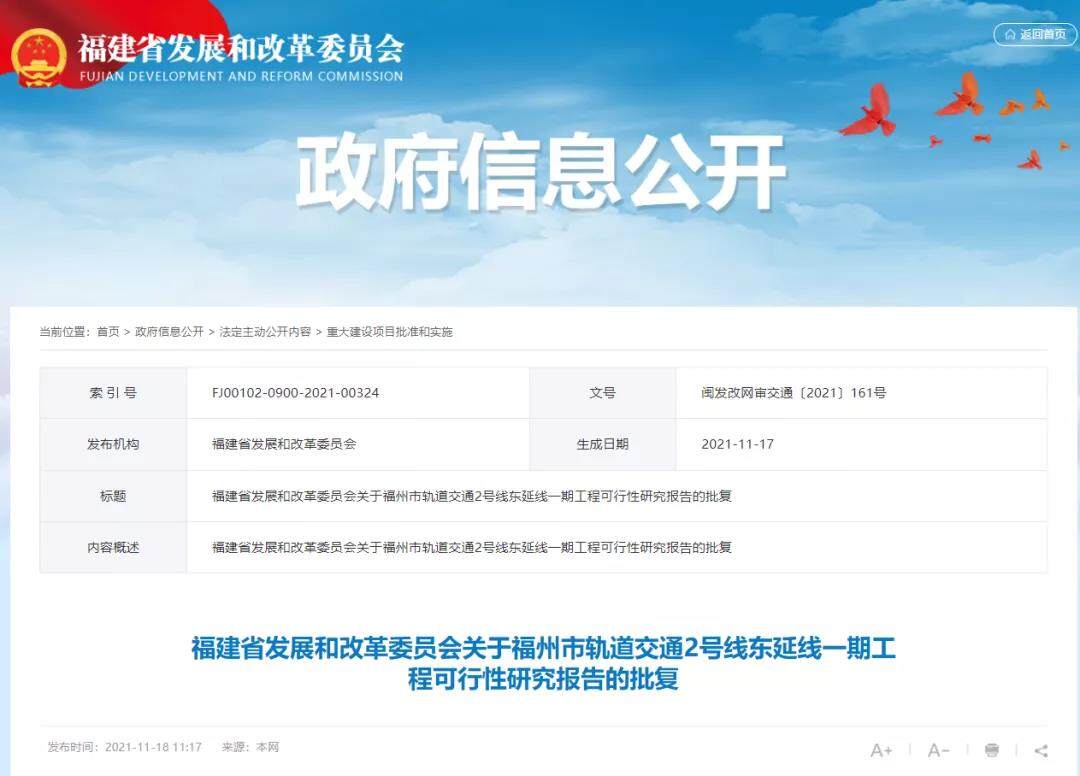 近日,福州地铁2号线东延线一期工程、地铁6号线及东调段工程可行性研究报告获得福建省发改委批复,意味着这两条项目距离开工,近了!