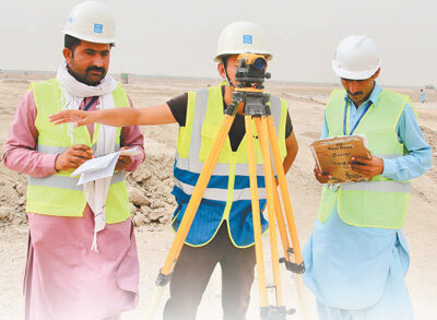 巴基斯坦PKM苏木段公路施工过程中,中巴员工共同开展过程测绘
