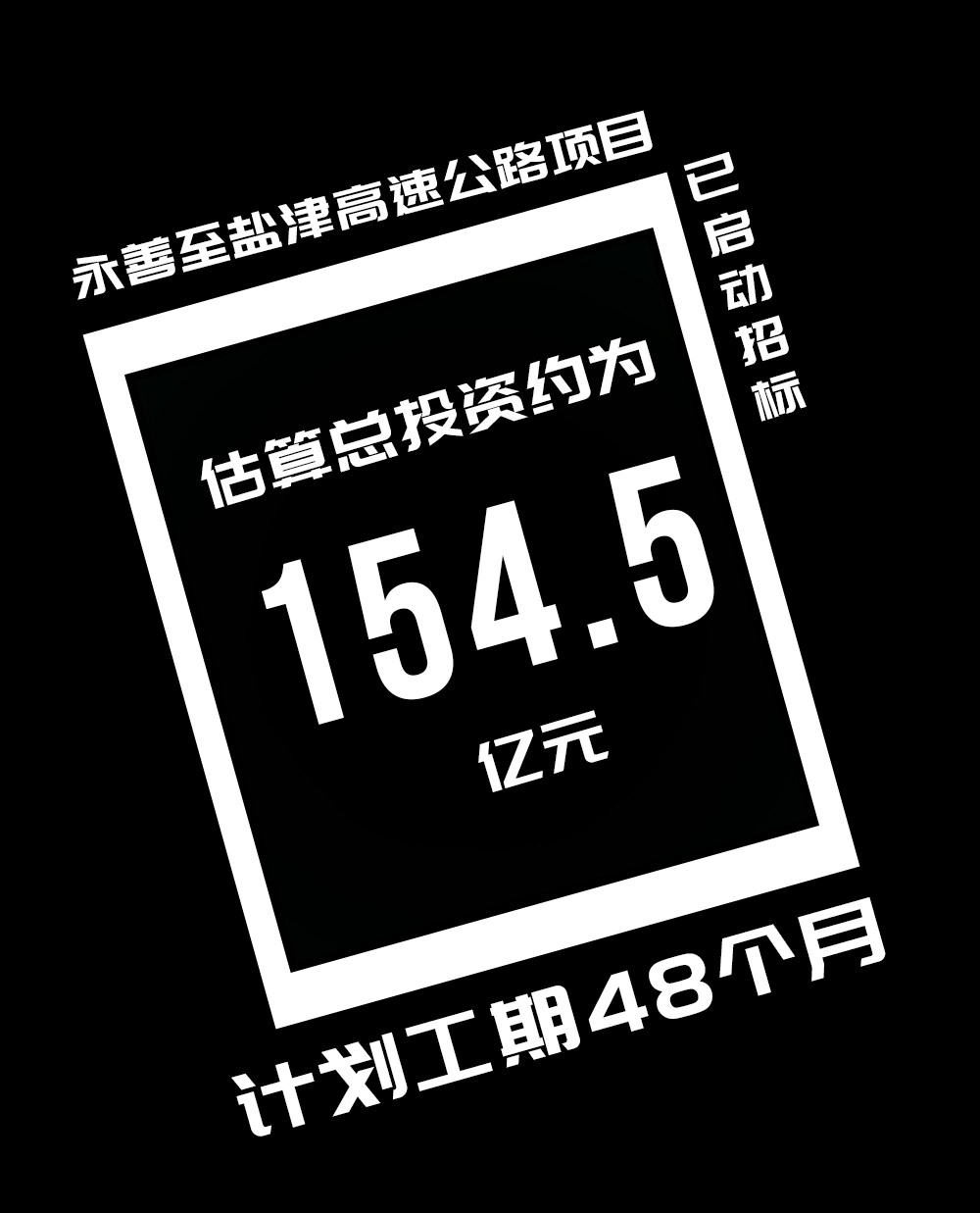 2021年11月22日,昭通市公共资源交易电子服务系统发布永善至盐津高速公路投资人暨合作承包建设者招标公告,招标人昭通市高速公路投资发展有限责任公司,估算总投资约为154.553亿元,计划工期48个月。