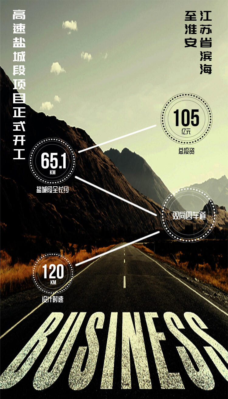 滨海至淮安高速公路项目起自盐城港滨海港区规划观海大道与海城路交叉处,止于滨海县关南村盐城与淮安两市交界处。总投资105亿元,盐城段全长约65.1公里,双向四车道,设计时速120公里。