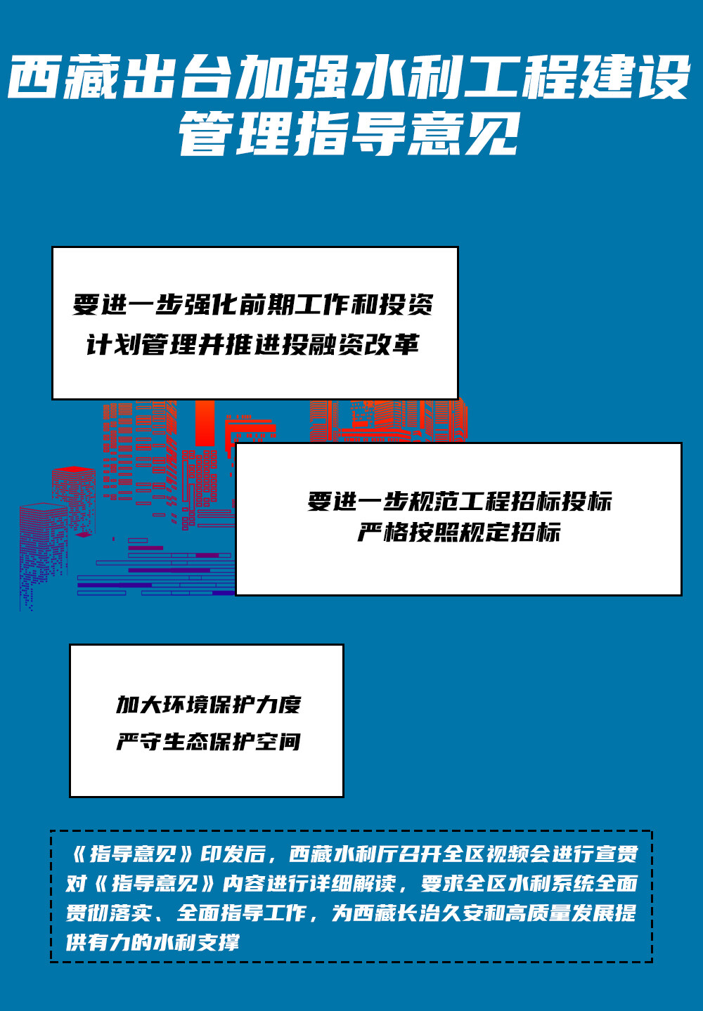 水利工程建设关乎人民最基本的生活保障,西藏自治区人民政府于近日印发了《关于进一步加强水利工程建设管理指导意见(试行)》(以下简称《指导意见》)。