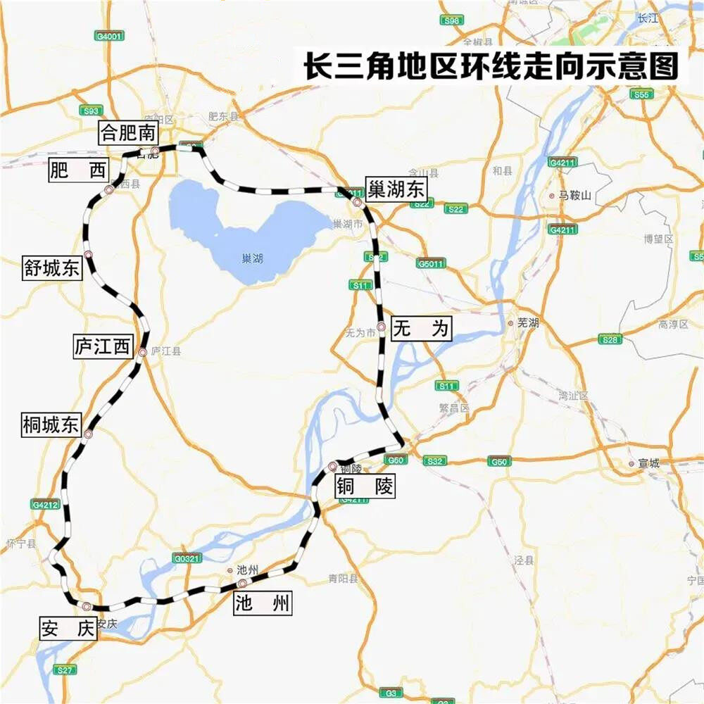 2021年1月,合肥南至合肥南的环线高铁开通,串起了沿线肥西、舒城、庐江、桐城、安庆、池州、铜陵、无为、巢湖等地。铜陵、池州等地与合安沿线城市间往来,不需要中途换车即可一车直达。