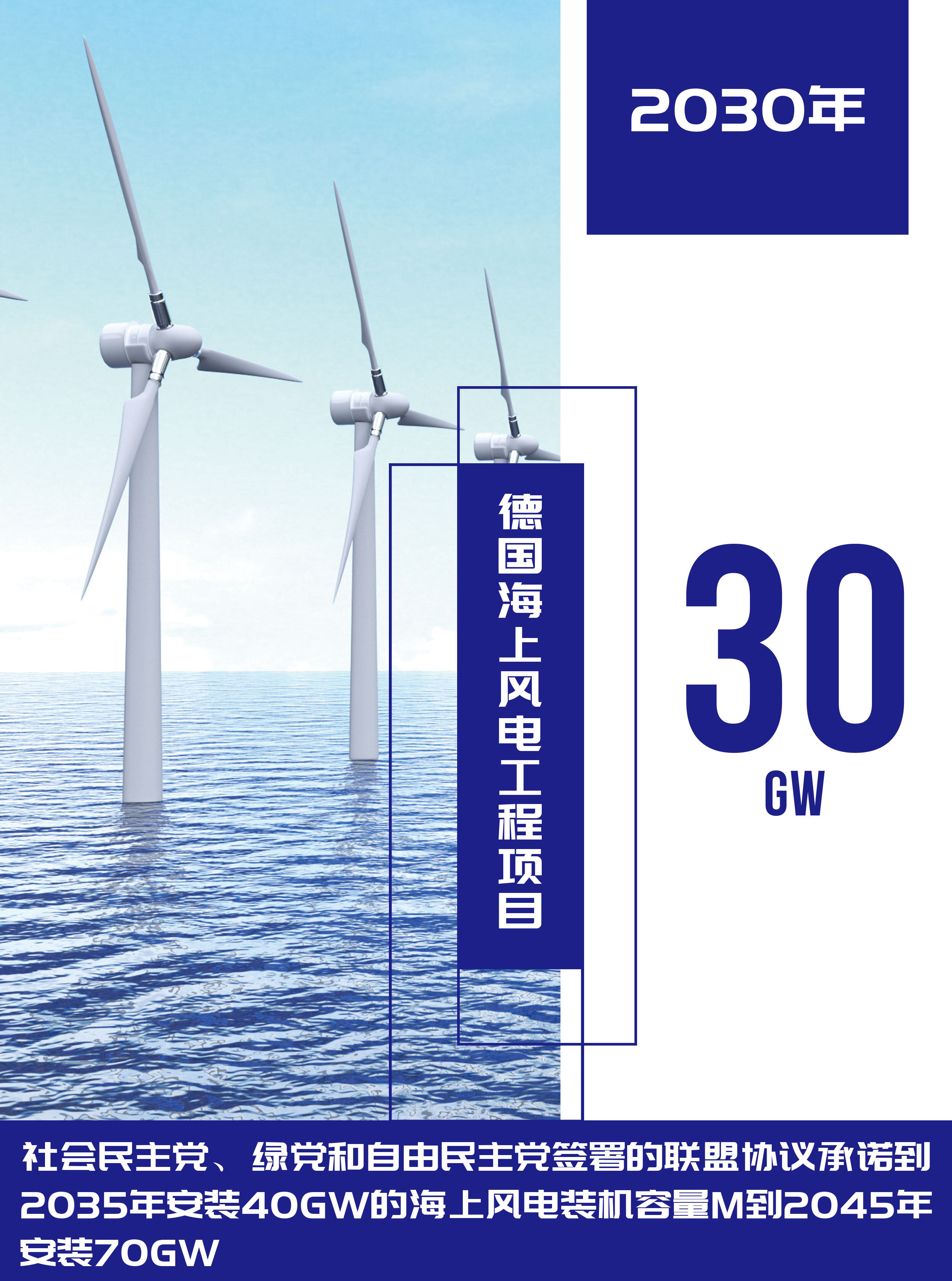 德国新的联合政府设定了到2030年安装30GW海上风电装机容量的目标,高于该国之前的20GW目标。社会民主党、绿党和自由民主党签署的联盟协议承诺到2035年安装40GW的海上风电装机容量,到2045年安装70GW。