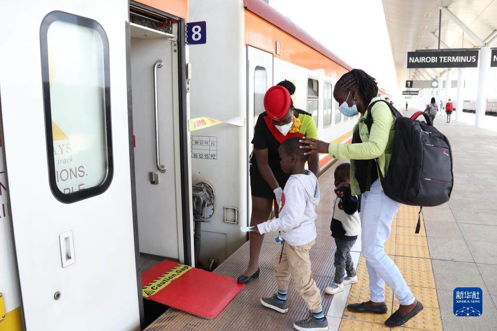 At about 2:10 pm on November 27, 2021, Kenya time, the Mombasa-Nairobi railway passenger train departed from Mombasa and slowly drove into the Nairobi Station of the Mombasa-Nairobi Railway after honking its whistle. The reporter saw on the platform that passengers were walking out of the carriages carrying large bags, some went to the feeder train platform leading to downtown Nairobi, and some went directly to the parking lot.
