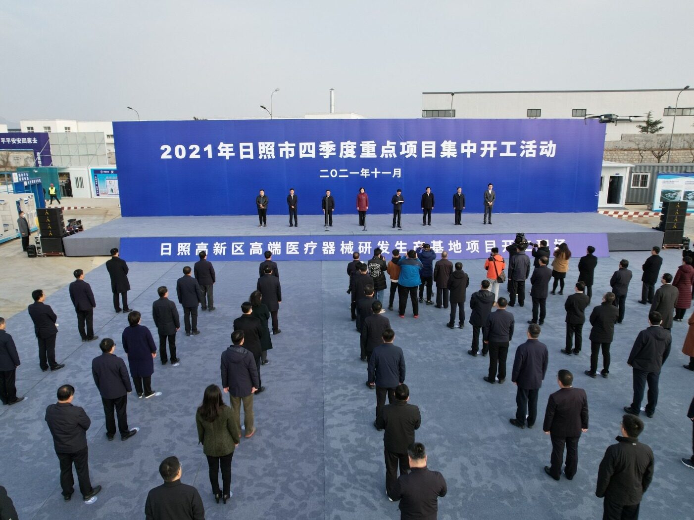 2021年11月29日,山东日照市第四季度123个重点项目集中开工,总投资388亿元,年度计划投资150亿元,主会场设在高新区高端医疗器械研发生产基地项目现场,其他区县、功能区设分会场。