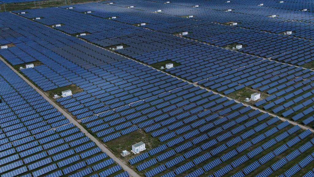 深蓝色的光伏板熠熠生辉,风力发电机的叶片迎风飞转,百米高的吸热塔和数以千计面镜子组成了科技感十足的熔盐塔式光热电站,望着位于青海省海南藏族自治州共和县的绿色产业发展园,牧民吾金多杰没有想到,塔拉滩这片半荒漠化的“风沙之地”,如今却成为千万千瓦级的新能源基地。