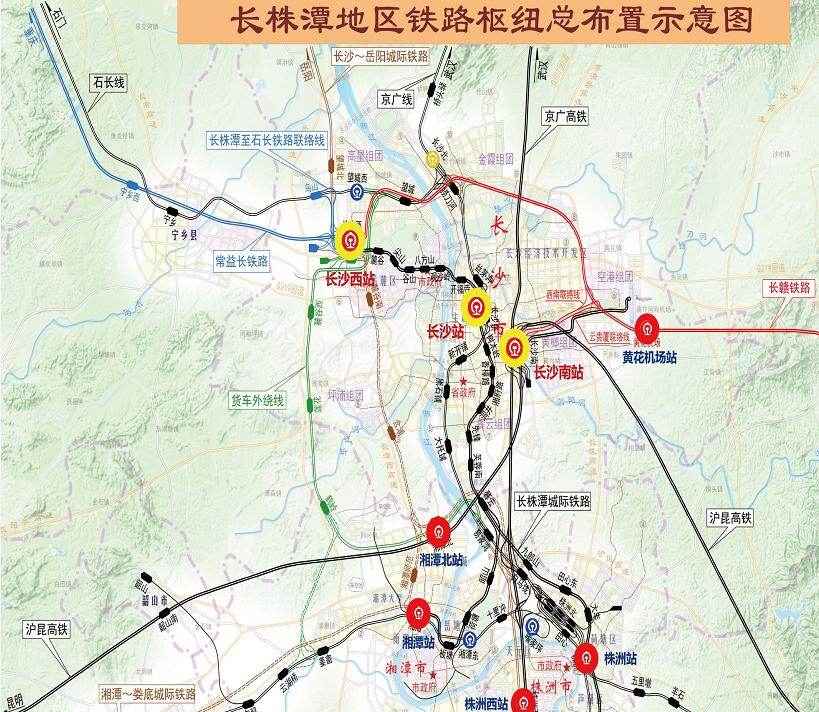 按照长江经济带、中部地区崛起战略要求,积极推进长江中游城市群省会城市融合发展,提升长沙市省会城市的辐射带动作用。加快实施铁路“米”字型通道建设,建成渝长厦高速铁路常益长段、开工建设渝长厦高速铁路长赣段,启动长九高速铁路、京广高速铁路复线等项目前期研究,实现长沙和成渝地区双城经济圈、海峡西岸城市群等国家重要城市群、省会城市及其他大中城市高速铁路便捷联通。积极谋划城际铁路,启动长岳城际、长衡(含长沙西至湘潭北至株洲西联络线)城际等项目前期工作,进一步缩短长株潭“3+5”城市群时空距离。