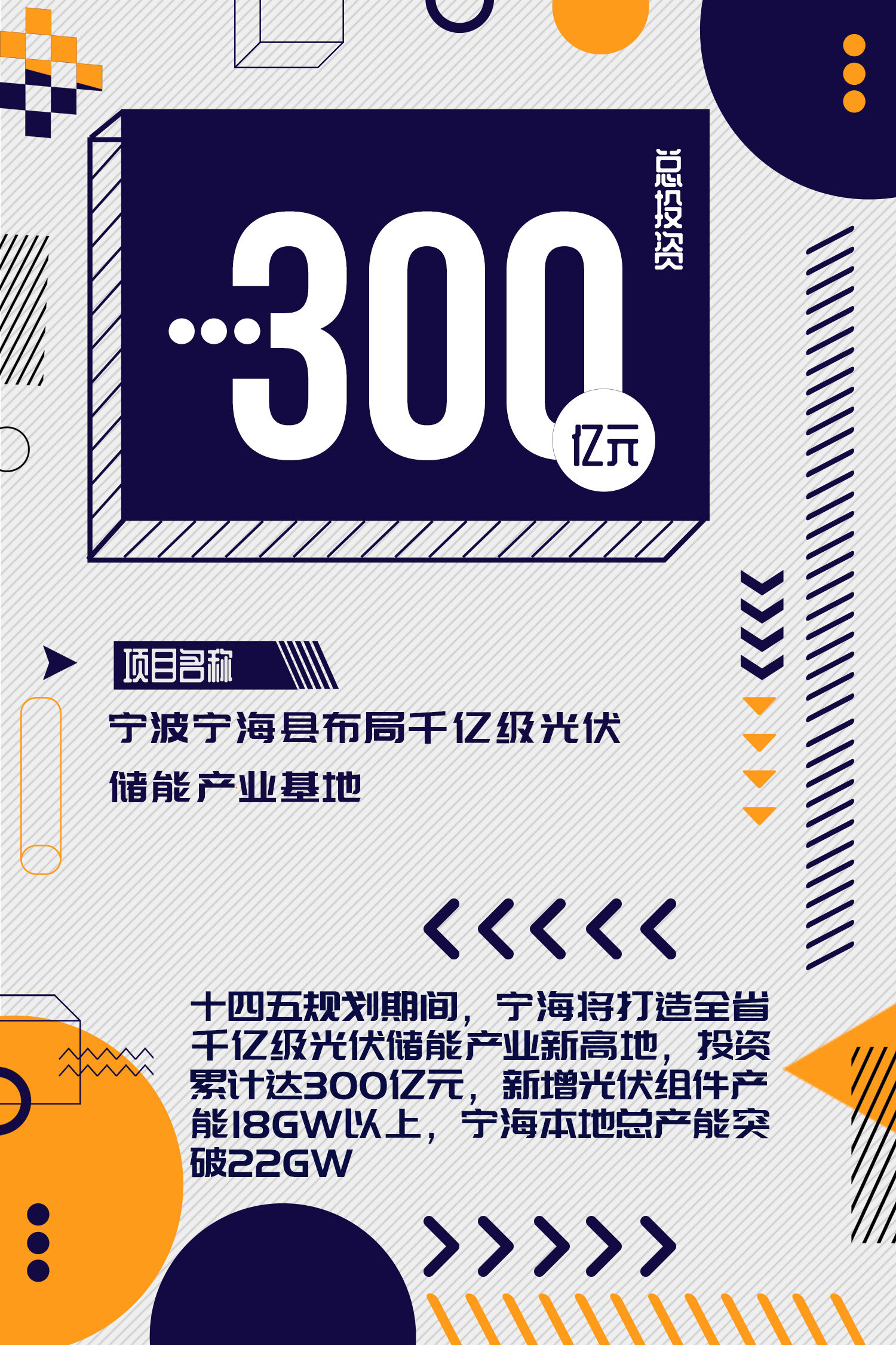 近年来,宁海县全链式推进“光伏+储能”产业培育,已有东方日升、旗滨集团、震裕科技等光储产业领域龙头企业,在宁波南部滨海经济开发区及宁海经济开发区梅桥区块布局设点,产业链上下游不断完善。根据新出台的《宁海县光伏+储能产业培育实施方案》,十四五规划期间,宁海将打造全省千亿级光伏储能产业新高地,投资累计达300亿元,新增光伏组件产能18GW以上,宁海本地总产能突破22GW。