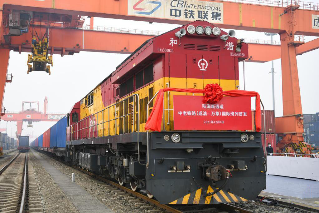 作为一带一路重要项目之一,从中国昆明到老挝万象的中老铁路,在2021年12月4日成为陆海新通道一条全新的物流线路。上午,相距200余公里的重庆团结村站和成都国际铁路港内,汽笛声同时响起,两列陆海新通道中老铁路(成渝-万象)首发班列同时驶出站台,标志着这条物流新线路的贯通。
