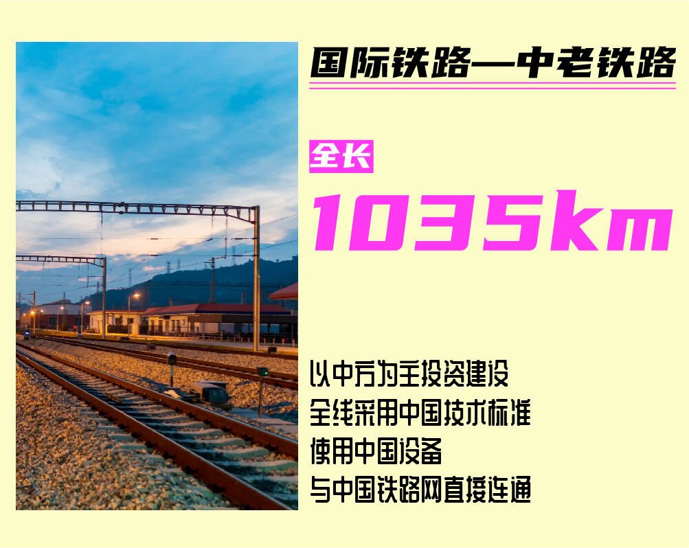 中老铁路全长1035公里,线路北起昆明,过中国磨憨铁路口岸和老挝磨丁铁路口岸,最后到达老挝首都万象,是以中方为主投资建设、全线采用中国技术标准、使用中国设备并与中国铁路网直接连通的国际铁路。(转载请注明见道网www.seetao.com)见道网一带一路栏目编辑/徐宁、设计/王霞