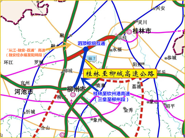 据了解,该项目地处广西壮族自治区中北部,位于柳州市北部生态新区、柳城县、融安县、鹿寨县以及桂林市永福县内,是广西高速公路网规划纵7线的端点,布局在三北高速与泉南高速之间。