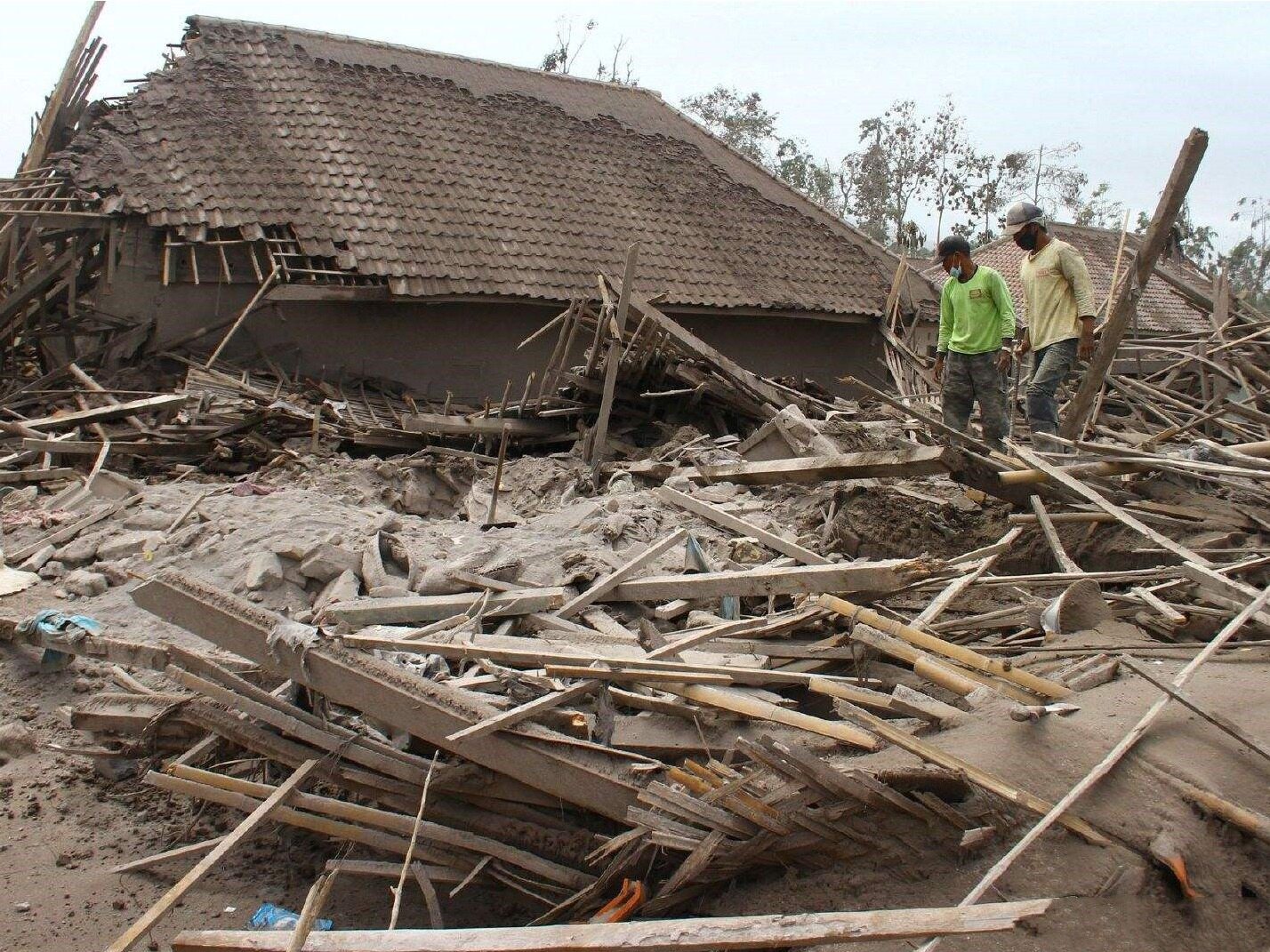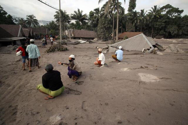 据印尼当地人拍摄的图片显示,直冲云霄的火山灰滚滚而来,人们纷纷奔跑避难。救援人员表示,救援工作受到浓烟、断电和暴雨影响而困难重重,他们甚至不得不从堆得跟屋檐一样高的火山灰里挖人。