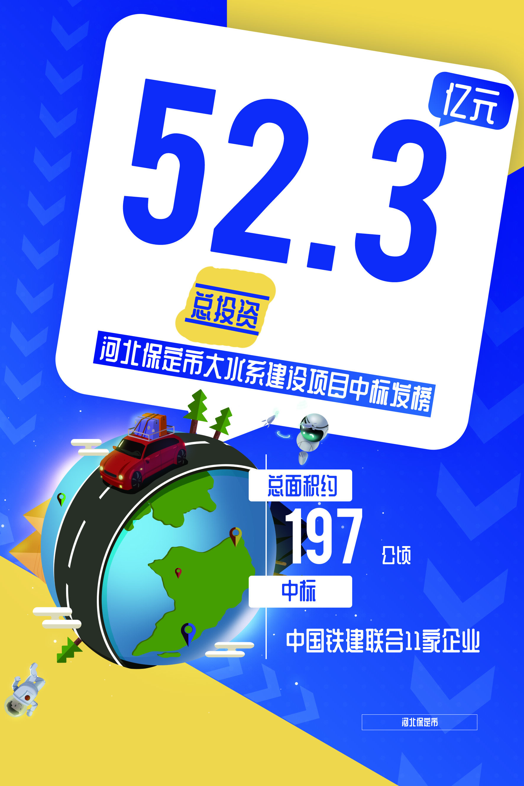2021年12月6日,河北省招标投标公共服务平台发布保定市大水系建设项目-环堤河基础设施及生态环境综合治理工程中标公示,中国铁建联合11家企业拿下河北保定市大水系建设项目,项目总投资52.3亿元。
