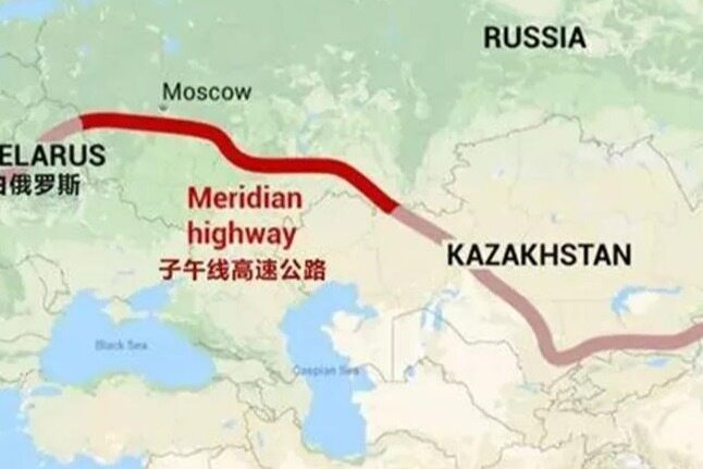 The Meridian Highway is a highway planned by Russia. It starts from the Russia-Kazakhstan border, passes through eight Russian states, and ends at the Russian-Belarusian border. The length is 2,000 kilometers.