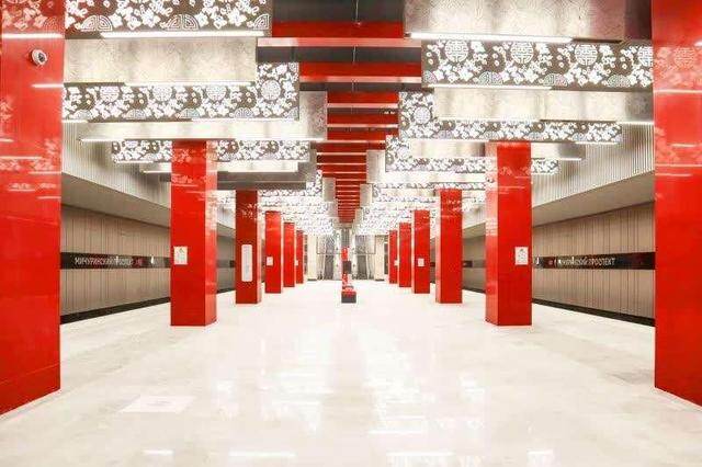当前,莫斯科地铁客运量居欧洲第一,世界第二。市民每天乘坐地铁的平均距离约14.5公里。莫斯科地铁不仅是市民的便捷交通工具,还以“地下艺术宫殿”享誉全球。走进米丘林大街地铁站,红色立柱、团寿纹、祥云等中国元素随处可见,成为中俄友谊的新地标,展现出一带一路上的跨文化盛景。