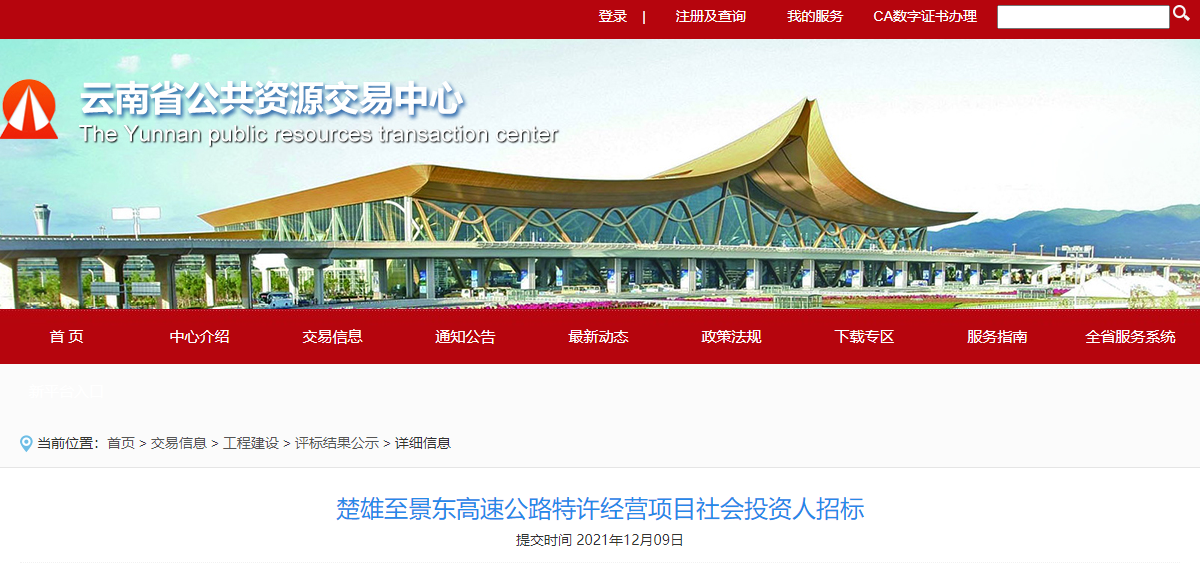 2021年12月9日,云南省公共资源交易信息网发布楚雄至景东高速公路特许经营项目中标候选人公示,云南基投组战队夺得高速路大订单,项目总投资251亿元。