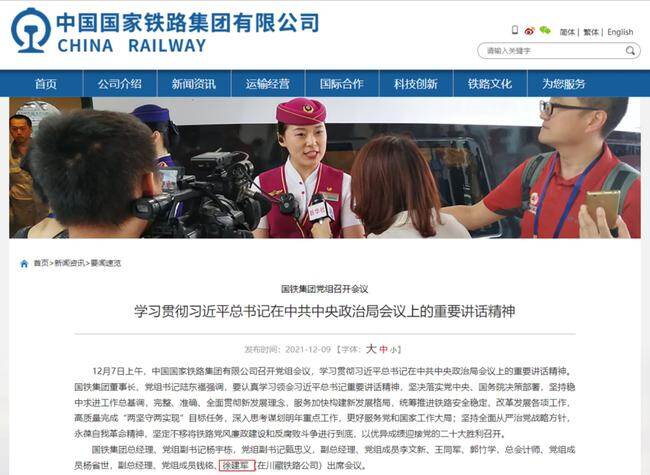 见道网根据国铁集团官网消息,2021年12月7日上午,中国国家铁路集团有限公司召开党组会议。国铁集团总经理、党组副书记杨宇栋,党组副书记甄忠义,副总经理、党组成员李文新、王同军、郭竹学,总会计师、党组成员杨省世,副总经理、党组成员钱铭、徐建军(在川藏铁路公司)出席会议。