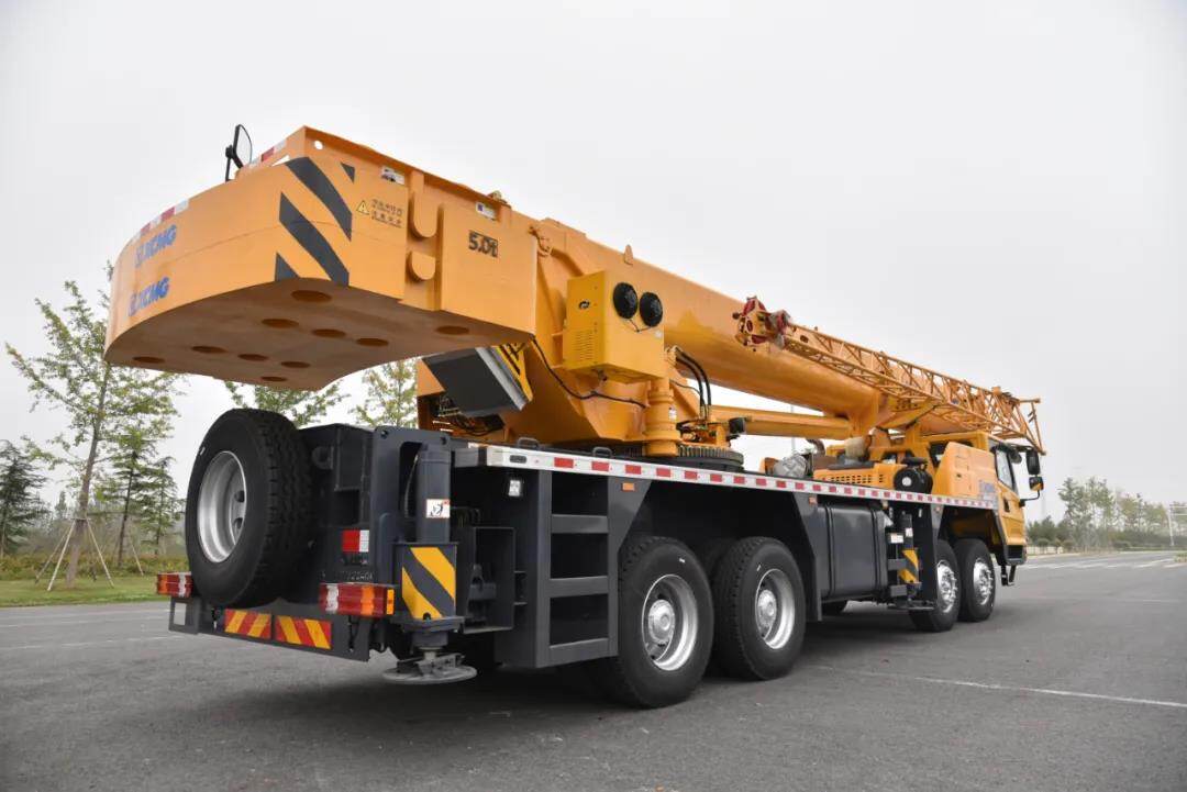 徐工QY40K5D_1配置:四桥底盘,45m主臂,最长臂架54m,45m全伸臂最大吊重量8.9t;伸缩油缸同步加强,回转支承底座加强;升级大跨距双级支腿,50t级规格的钢丝绳用料,340匹最大马力发动机,越野型四桥专用G类底盘,配重增加……
