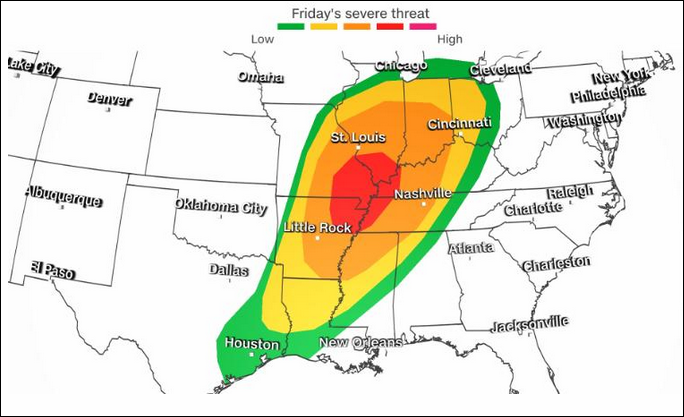 According to reports, the tornado caused one death and five serious injuries in a nursing home in Arkansas; the roof of an Amazon warehouse in Illinois was overturned and at least six people died; Tennessee and Missouri killed three and one respectively.