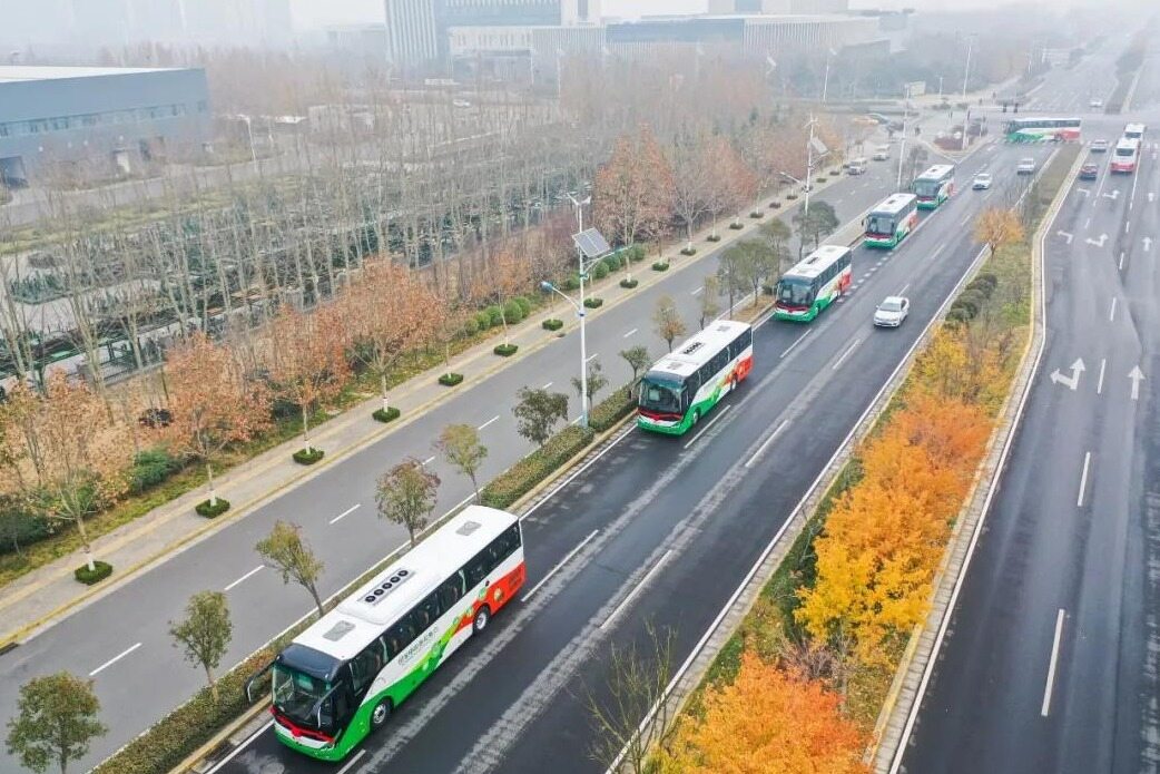 12月10日上午,30辆搭载国家电投氢能公司“氢腾”品牌燃料电池系统的宇通牌客车整齐排列,蓄势待发。随着一声令下,“氢腾”正式从郑州启航,跨越黄河,穿越隧道,历经800公里驶向北京延庆。100辆宇通氢燃料电池客车开始陆续交付。