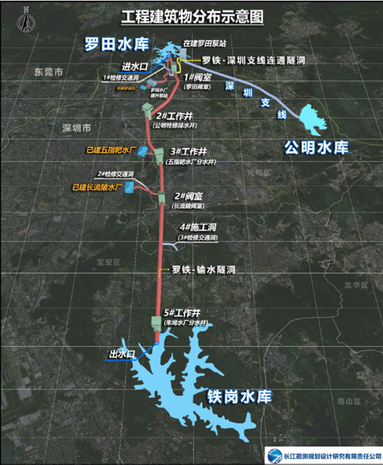 罗田水库——铁岗水库输水隧洞工程是我市重大项目,与珠江三角洲水资源配置工程相衔接,是构建我市东、西江双水源保障体系,实现90天应急供水保障能力的关键性工程。本工程取水口设于罗田水库,沿途经过宝安区、光明区分别向罗田、五指耙、长流陂等水厂输配原水,交水点设于铁岗水库,设计输水规模260万立方米/天,采用深隧方式,隧洞全长21.7公里,洞径5.2米,埋深50米以上。
