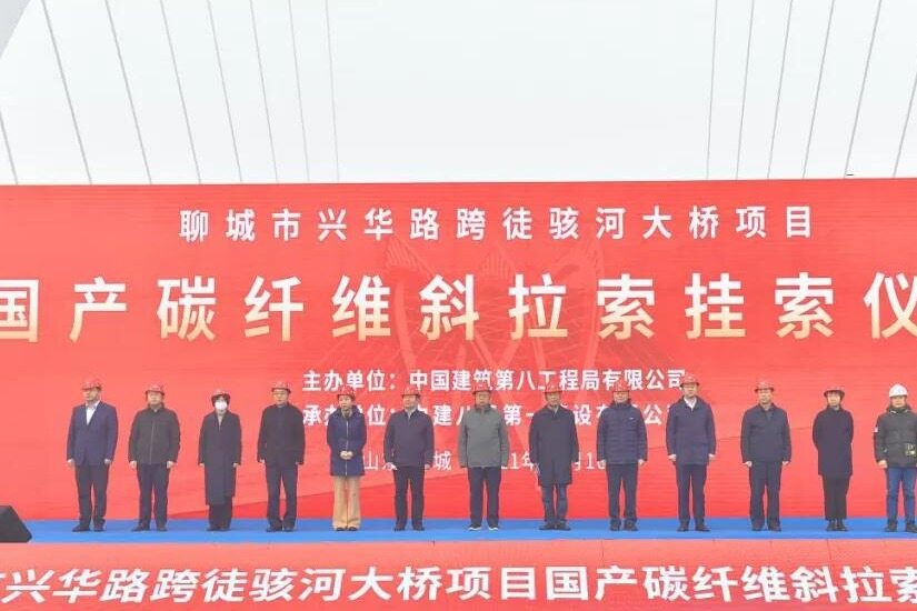 2021年12月10日,兴华路跨徒骇河大桥项目国产碳纤维斜拉索挂索仪式在山东聊城举行,这标志着国产碳纤维首次应用于桥梁主索。该项目碳纤维斜拉索产品由柳工欧维姆提供。