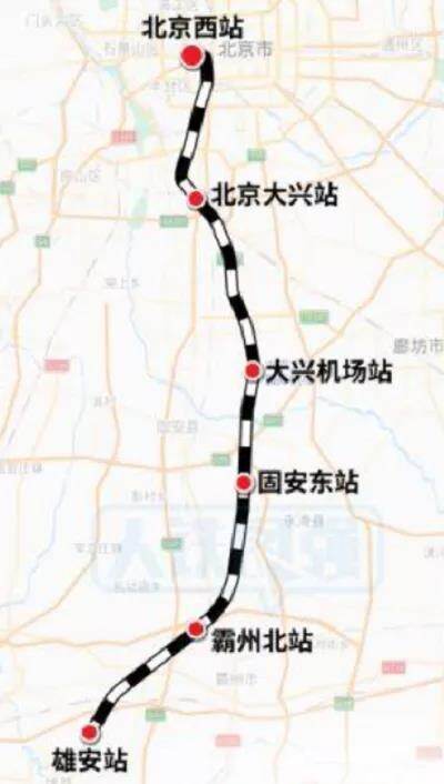 线路全长91公里,总投资334亿。最高设计时速350公里,全线新建北京大兴、大兴机场、固安东、霸州北、雄安站5座车站。2020年12月27日正式开通。从北京西站至雄安新区,最快50分钟可达。