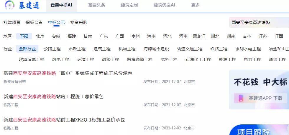 2021年12月2日,新建西安至安康高速铁路发布站前工程XKZQ-1标、站房以及四电工程中标,分别由中铁一局、中铁建设、中铁十二局负责施工。