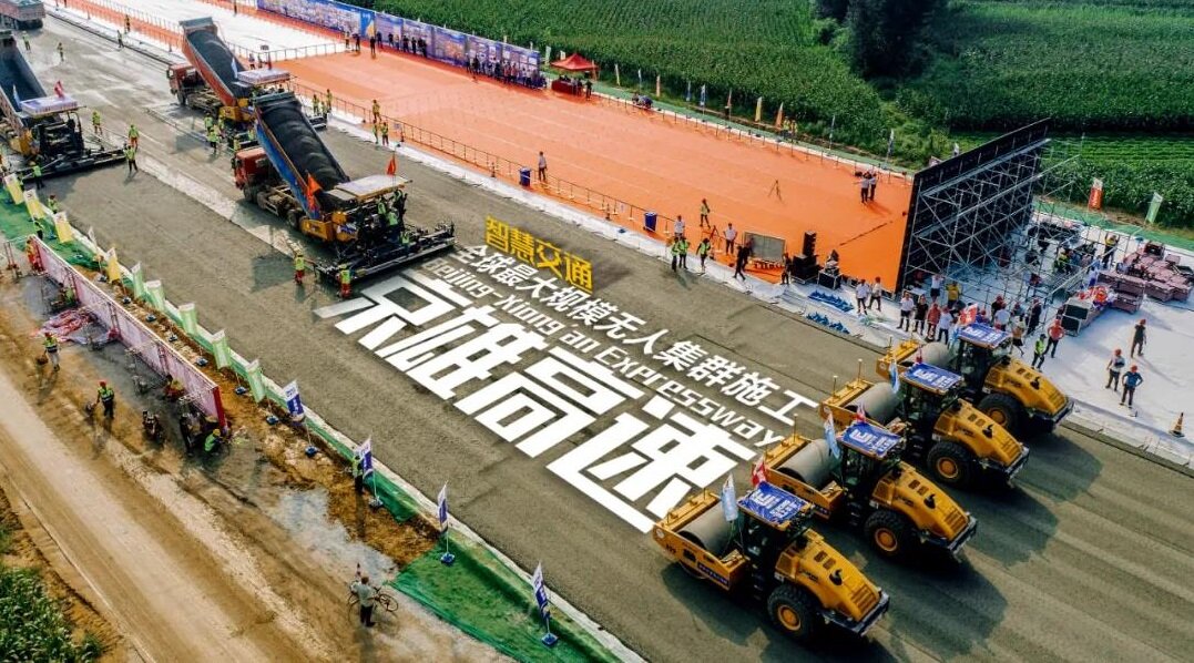 在这条高速公路上,徐工无人集群凭借优异的产品性能和强劲的多工况适应性,创新性的解决了施工方在效率、成本、质量、安全、操控、监管等方面的难点,打造了全球最大规模的无人驾驶集群智能化施工应用。