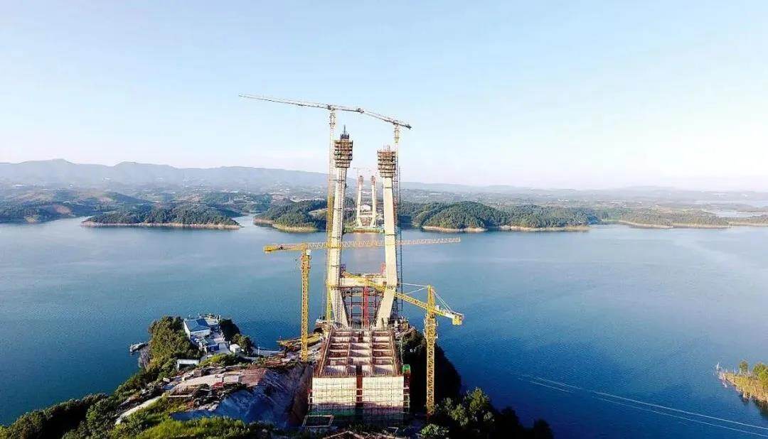 丹江口水库特大桥是十淅高速公路的控制性工程,创造世界“四宗最”:世界最大跨径的部分地锚式斜拉桥、世界最大跨径钢砼组合斜拉桥、世界最大的无轴力钢性铰应用、世界首次应用正交异性板+UHPC组合桥面板。