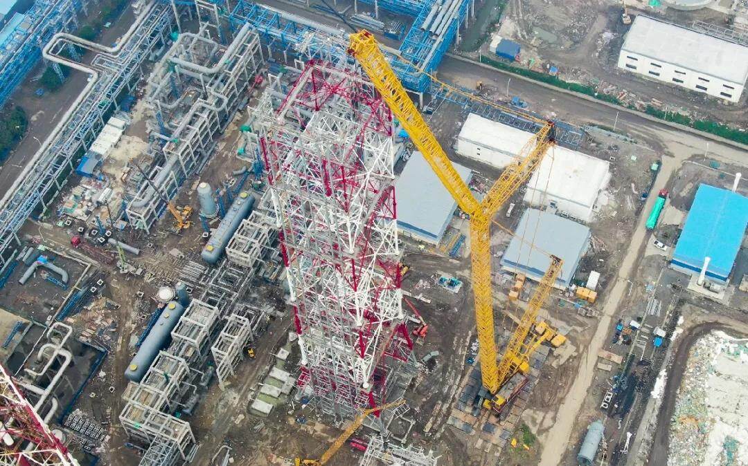 在中国东南沿海某石化建设基地,徐工XGC28000顺利完成火炬塔架吊装,以168米最高吊装就位高度、108+96m最大臂架长度,连破国内同级别产品两项纪录。