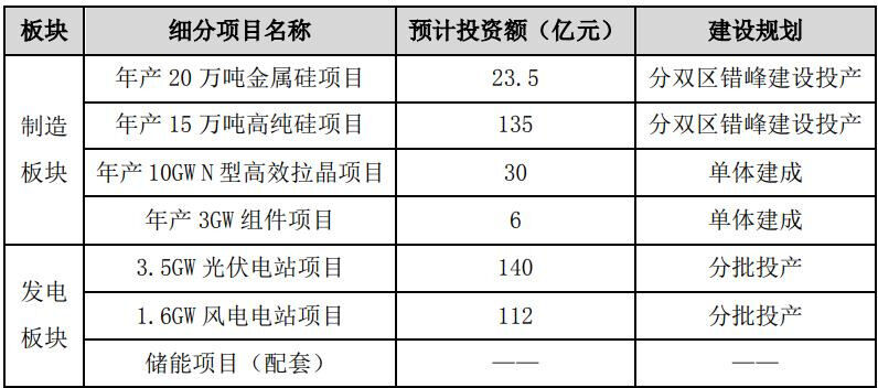 Risen Energy intends to invest in Guyang Jinshan Industrial Park, Guyang Jinshan Industrial Park, through its wholly-owned or holding subsidiary, in the source-network-load-storage integration demonstration project (Phase II) of the incremental power distribution network in Guyang Jinshan Industrial Park. The project is divided into two major sections. : One is the manufacturing sector (ie the load side): annual output of 200,000 tons of metallic silicon + 150,000 tons of high-purity silicon + 10GW N-type high-efficiency crystal pull + 3GW modules; the second is the power generation sector (ie, the power side): 3.5GW photovoltaic power station Project + 1.6GW wind power plant project + energy storage project.