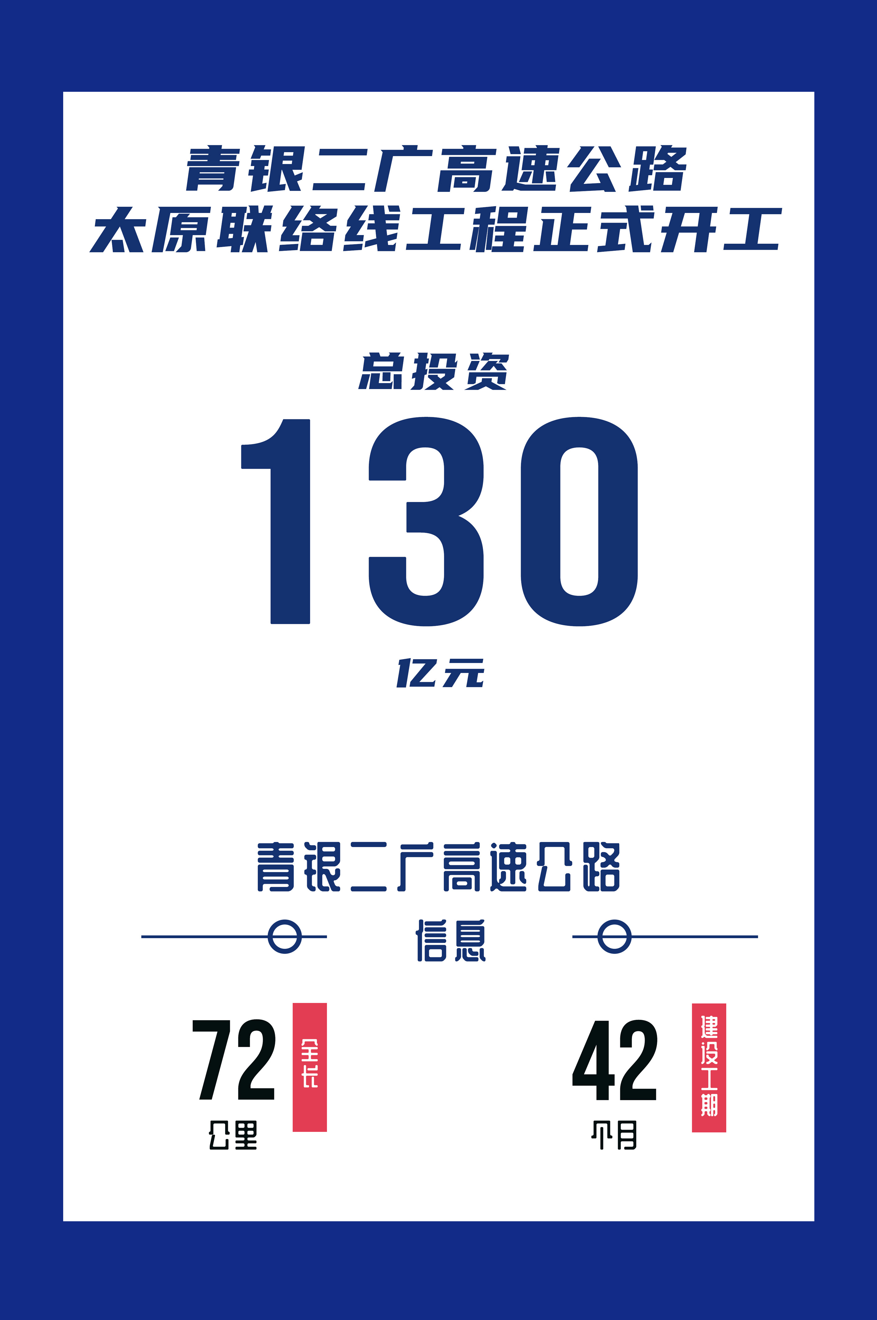 据了解,青银二广高速公路太原联络线全长72公里,东连阳泉旧街枢纽,西连太原市南内环街。全线采用双向六车道高速公路标准建设,建设工期三年半,预计于2025年6月底通车运营。项目估算总投资130亿元,采用BOT模式建设。关键词:交通项目建设、国内工程、基建资讯