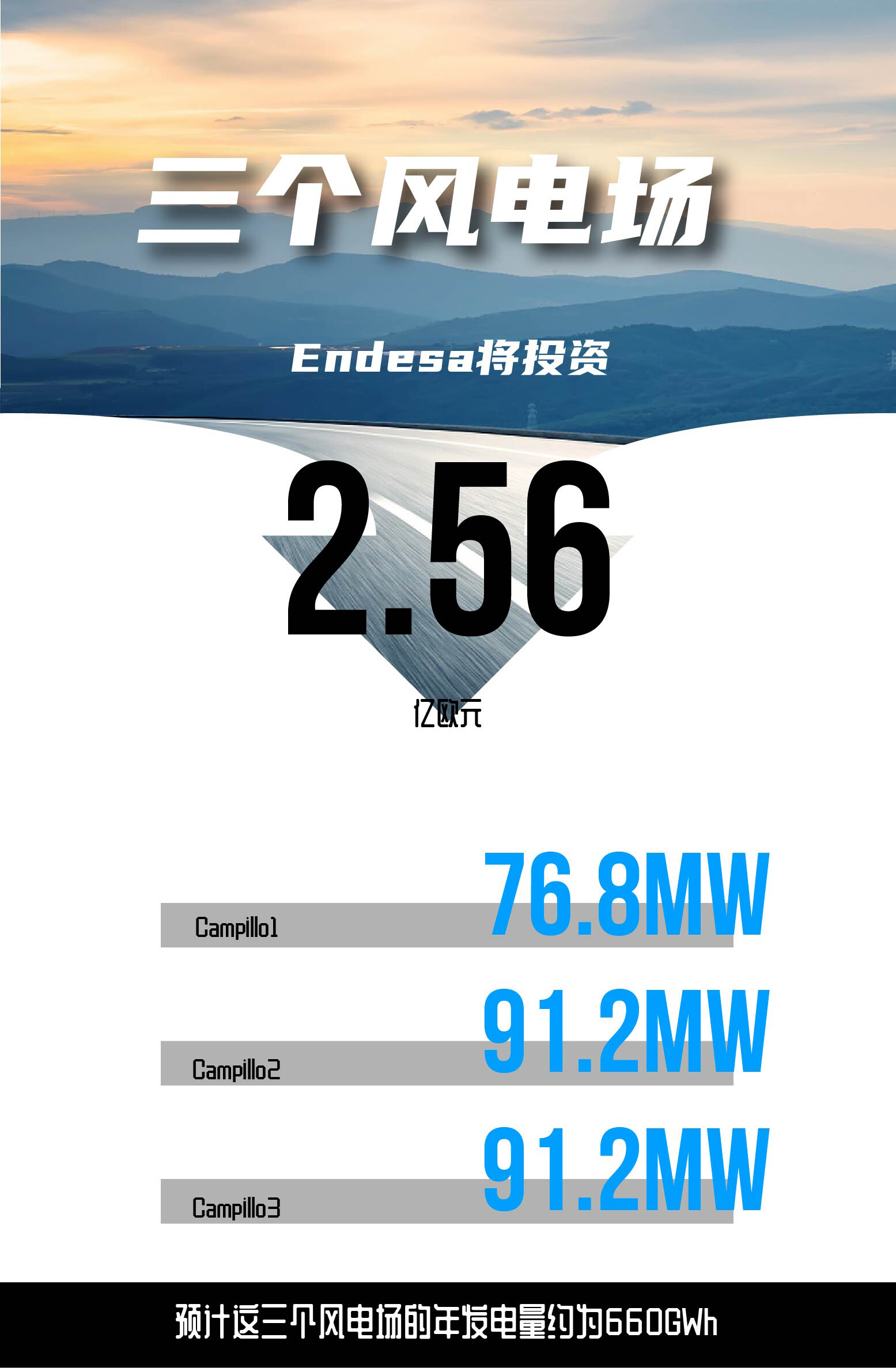根据EGPE的共享价值创造计划,Endesa将投资约2.56亿欧元用于建设三个风电场,预计将雇用约350名当地人。在三个项目中,Campillo1将是最小的,装机容量约为76.8MW,而Campillo2和3的容量分别为91.2MW。预计这三个风电场的年发电量约为660GWh,几乎是附近昆卡等城市年消耗量的两倍。Endesa表示,该项目包括四个变电站和三个高压线路。