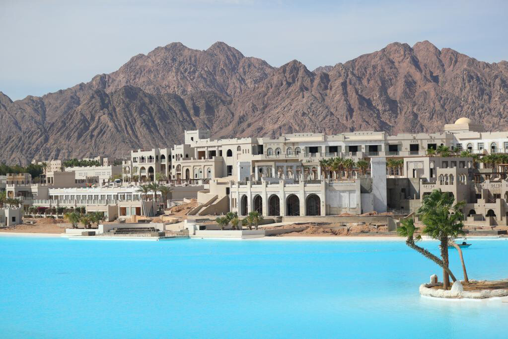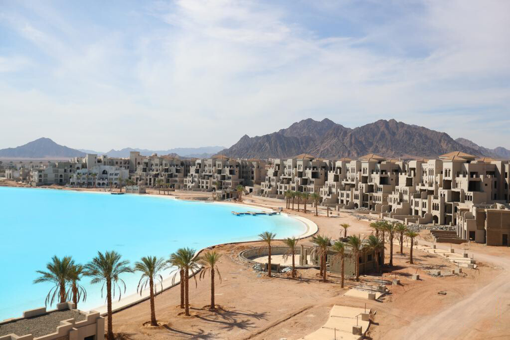 这是11月12日在埃及沙姆沙伊赫拍摄的由中国化学工程第十六建设有限公司承建的“城市之星”大型综合体项目工地