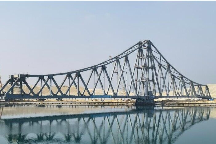 在埃及伊斯梅利亚省,由中企承建的苏伊士运河新建法尔达内铁路大桥2021年11月16日成功进行首次转桥对接测试,各项技术指标均满足设计要求,标志着大桥主体结构顺利完工。该桥跨越苏伊士运河,两端分别连接亚非大陆,在埃及一带一路项目建设中具有重要意义,对埃及苏伊士运河经济带建设也至关重要。