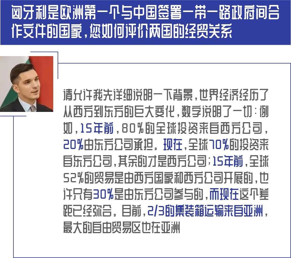 白思谛:作为欧盟成员,保持欧盟的竞争力和经济成功对匈牙利非常重要。在中欧关系中,匈牙利积极倡导以客观、平衡、反映现实的视角来看待中国,注重加强双方务实合作。匈牙利是一个出口导向型国家,我们对自由公平的全球贸易感兴趣,因此我们对中国持开放的态度,专注于那些会让我们团结在一起的问题,而不是那些会将我们分开的问题。