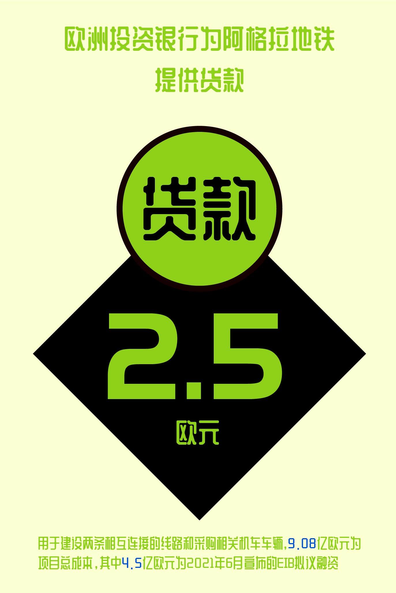 欧洲投资银行已于2021年12月20日签署了为阿格拉地铁提供的2.5亿欧元贷款,用于建设两条相互连接的线路和采购相关机车车辆。9.08亿欧元为项目总成本,其中4.5亿欧元为2021年6月宣布的EIB拟议融资。这笔贷款将支持在印度北部北方邦历史名城阿格拉建造两条30公里长的线路,由27个车站提供服务。预计整个项目将于2024年竣工。