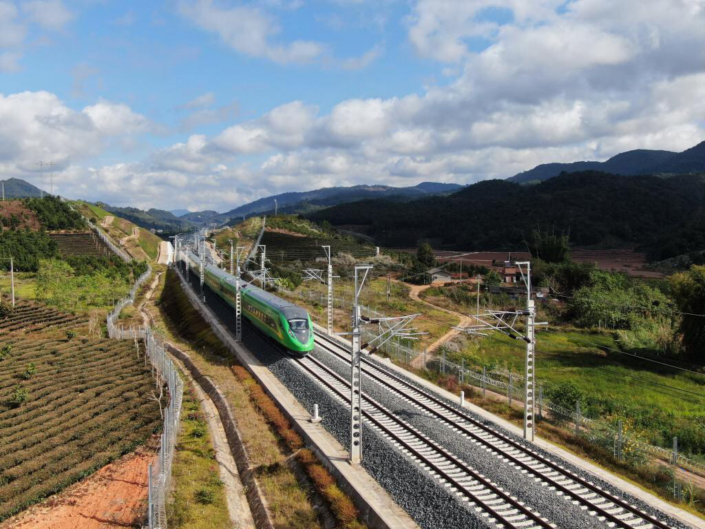 2022年1月3日,列车行驶在位于云南西双版纳傣族自治州景洪市境内的中老铁路上