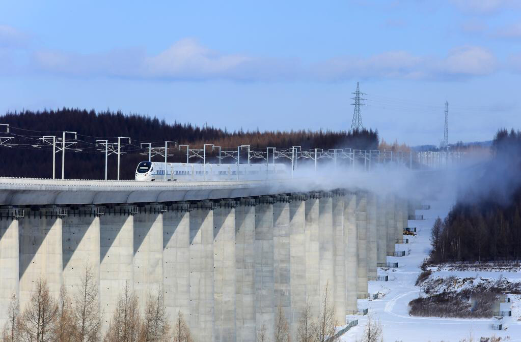 试运行期间,高铁列车行驶在沈佳高铁白敦段上