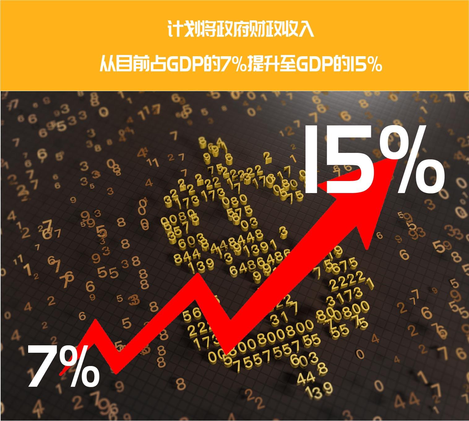 这项计划还有一个财政融资计划,计划将政府财政收入从目前占GDP的7%提升至GDP的15%。(转载请注明见道网www.seetao.com)见道网战略栏目编辑/许生鹏、设计/王霞