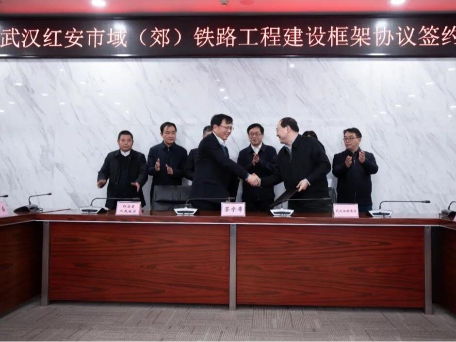 2022年1月5日上午,武汉红安市域(郊)铁路工程建设框架协议签约活动在武汉地铁集团顺利举行,这是全面贯彻省委省政府提出的“一主引领、两翼驱动、全域协调”区域发展布局,充分发挥武汉国家中心城市引领辐射作用的具体行动,是武汉城市圈市域铁路建设的一个新起点,是开启武汉——黄冈同城化发展的里程碑。