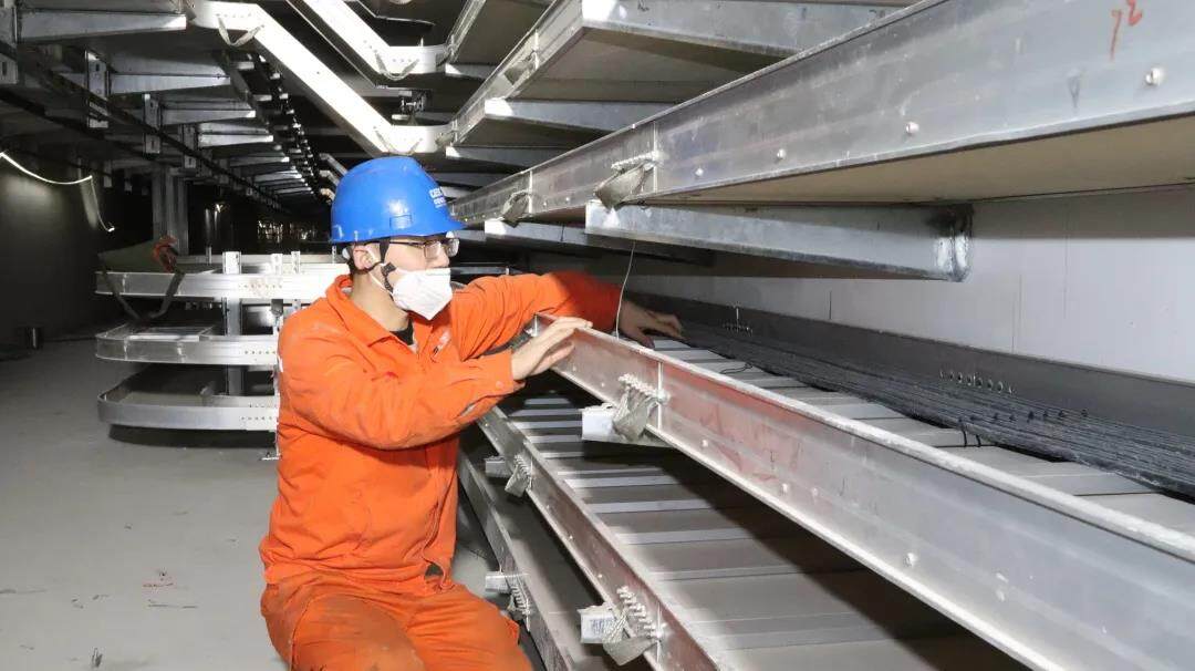 电缆廊道正在进行电缆敷设