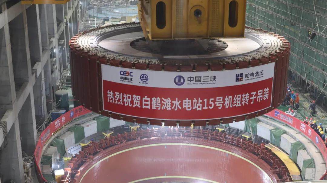 白鹤滩水电站15号百万千瓦机组转子吊装