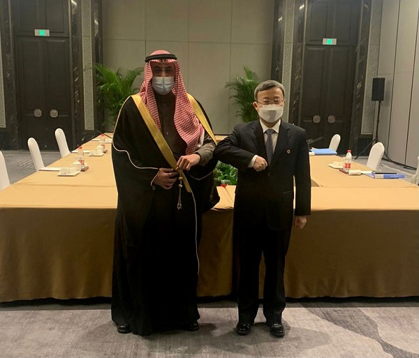 2022年1月11日,商务部副部长兼国际贸易谈判副代表王受文在江苏无锡与海合会自贸谈判总协调人哈勒比举行会谈,就中国—海合会自贸协定谈判进行深入沟通。(转载请注明见道网www.seetao.com)见道网战略栏目编辑/许生鹏